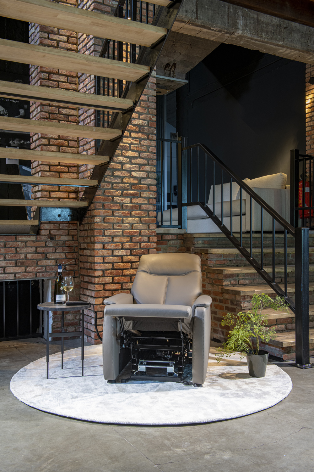 Relaxfauteuil met powerlift (opstaphulp) met 2 motoren. Bovendien voorzien van een trolley om deze makkelijk te bewegen alsook is een electrische hoofdsteun voorzien.