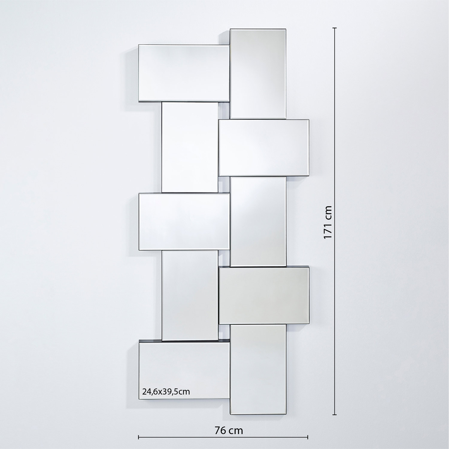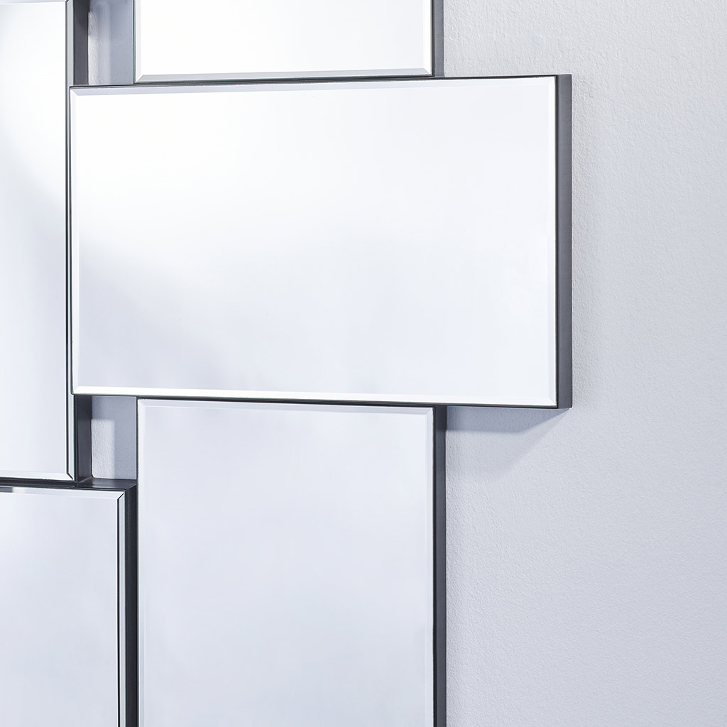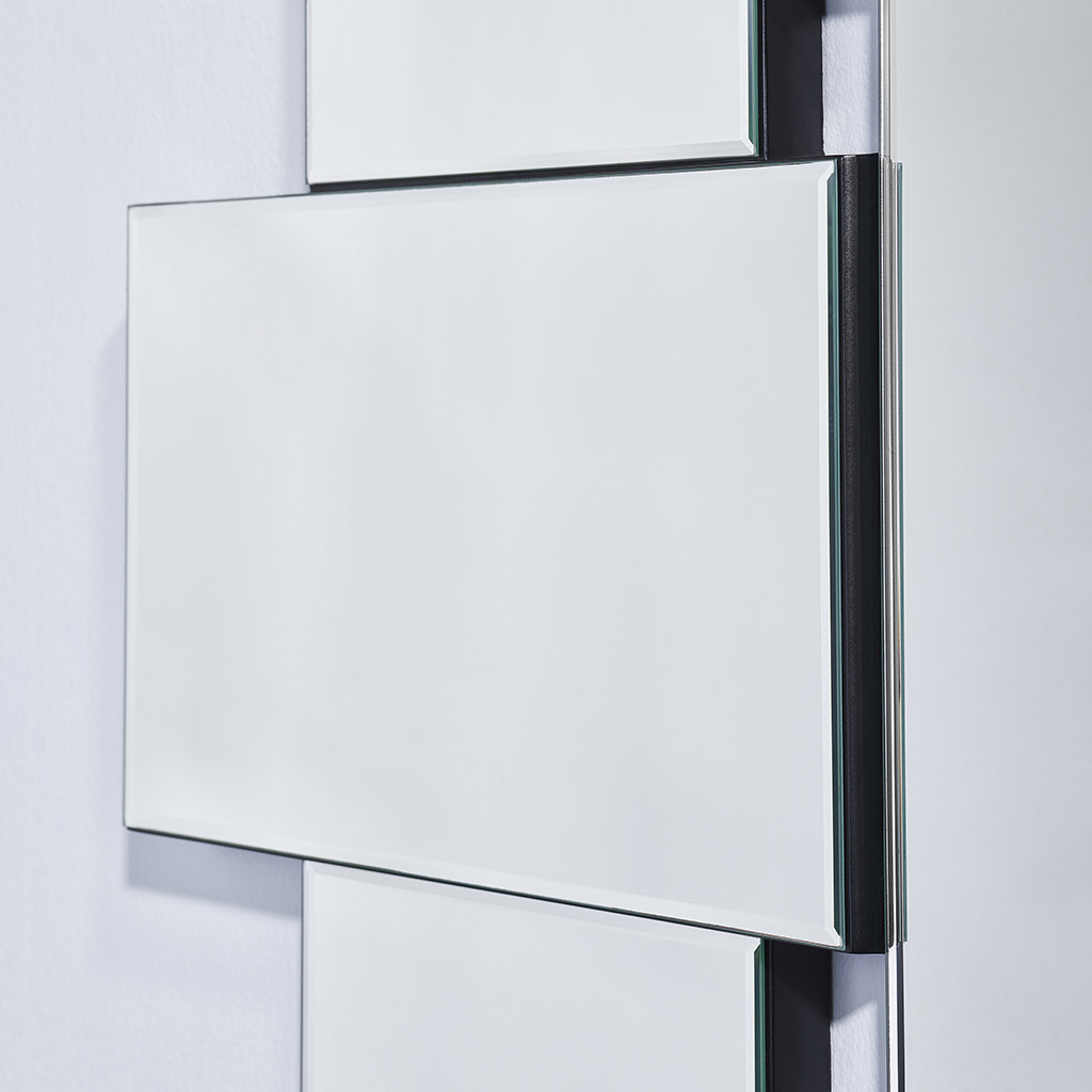 Criss Cross is een puzzel van 10 rechthoekige, identieke spiegels, stuk voor stuk afgewerkt met een mooi geslepen fijn stijlfacetje van 5 mm. De spiegelstukken staan zowel horizontaal als verticaal op elkaar, waarbij het ene stuk wat dieper ligt dan het andere. Tussen de rechthoekige spiegels wordt de muur zichtbaar, wat een extra dimensie geeft aan de Criss Cross. Alle spiegels worden bevestigd op een perfect zwart gespoten drager. De spiegel kan erg gemakkelijk in alle richtingen worden opgehangen, wat het u mogelijk maakt creatieve composities te maken van meerdere spiegels naast of boven elkaar.